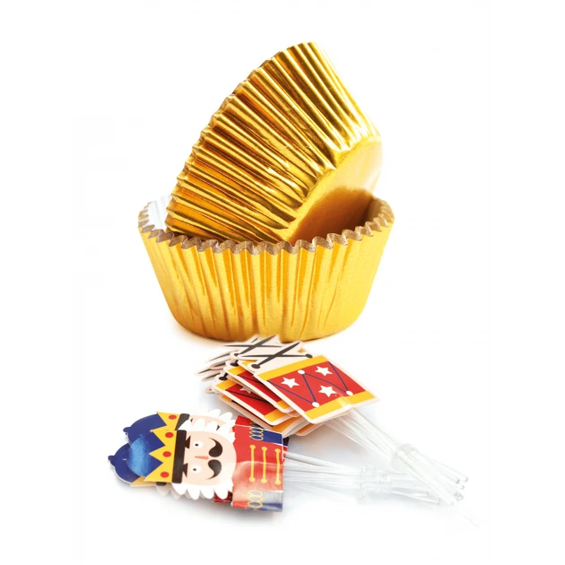 Sur le thème du ballet Casse-noisette de TchaĂŻkovsky, ces dĂ©cors vous assurent que petits et grands auront l’eau Ă la bouche en voyant vos rĂ©alisations. Le design simple mais Ă©lĂ©gant des caissettes en papier complète très bien les dĂ©tails des cake toppers en forme de casse-noisette et de tambours. CĂ©lĂ©brez l’un des ballets classiques les plus connus au monde en faisant des cupcakes Ă l’image de son protagoniste. Pouvant plaire Ă tous les genres et tous les âges, ces dĂ©cors Scrapcooking apportent fĂ©erie et gourmandise oĂą qu’ils soient.