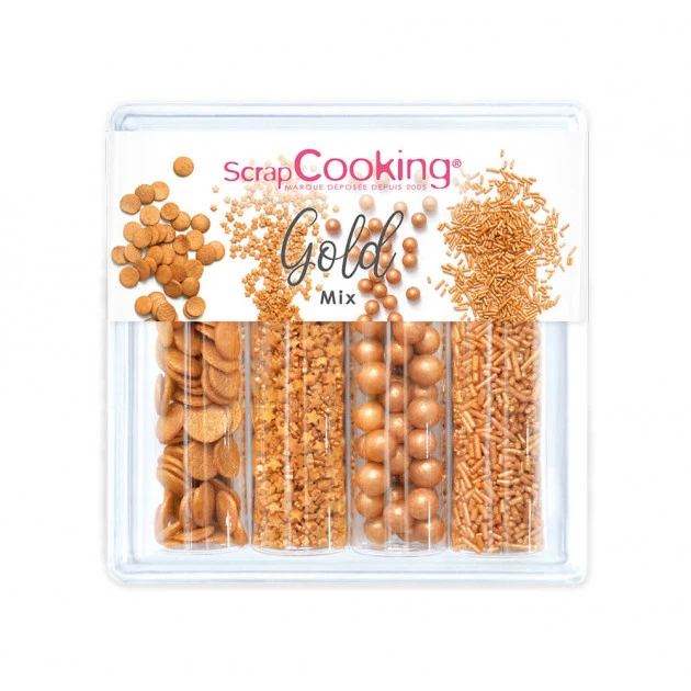 Mettez des paillettes dans vos desserts avec ce lot de 4 Décors en Sucre Gold Mix 62 g ScrapCooking.