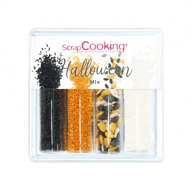 Pour Halloween, pousser le thème dans les moindres dĂ©tails en apportant la touche finale Ă vos desserts en utilisant ces 4 DĂ©cors en Sucre Halloween Mix 69 g Scrapcooking.Â