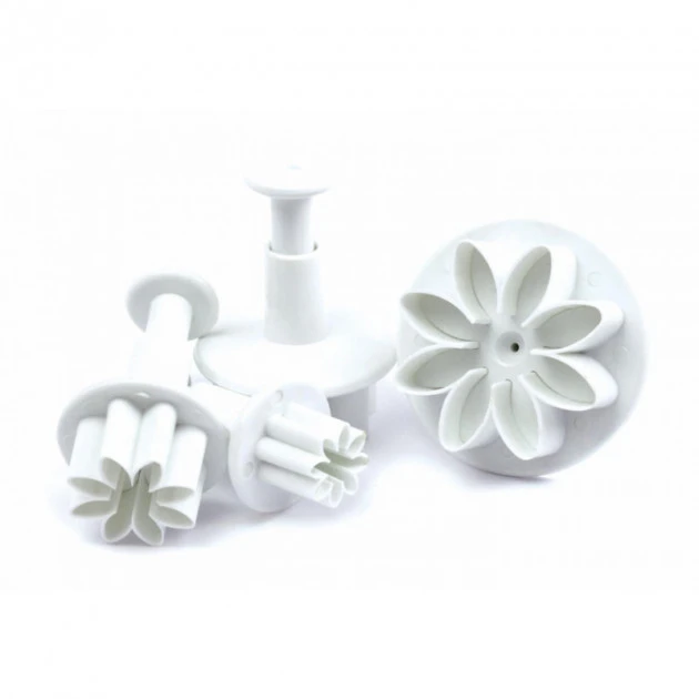 Décorez vos gâteaux, pièces montées et entremets avec de jolies fleurs en pâte à sucre et pâte d’amande grâce à ce jeu de 4 emporte pièces en forme de fleurs.