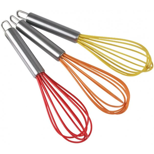 – Le fouet en silicone de raye pas vos contenants : culs de poule, casseroles…
