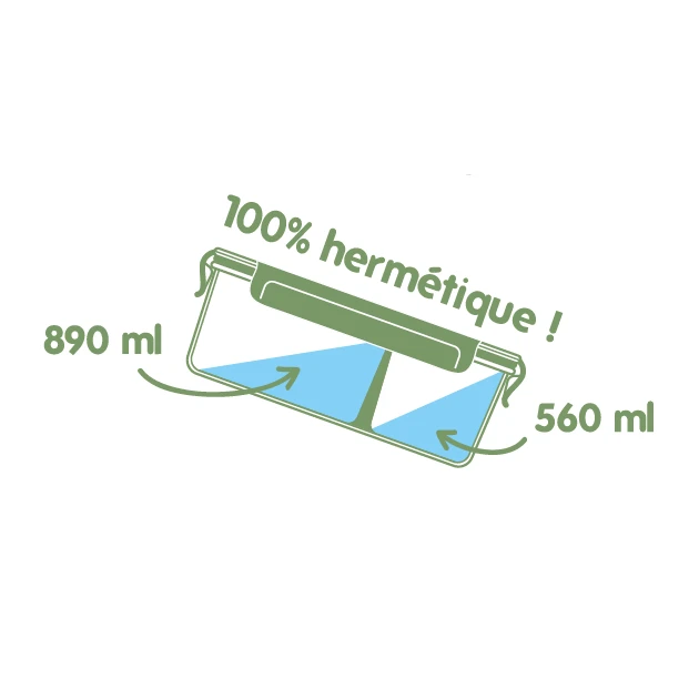 - Capacité totale : 1450 ml (890 + 560 ml)
