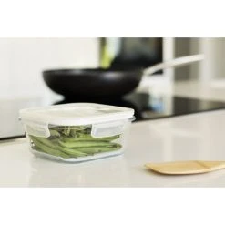 Pour une cuisine toujours bien rangée, la boîte en verre avec couvercle de forme carrée est empilable pour un rangement optimisé et pratique. Étant transparent, le récipient en verre vous permet de voir d’un coup d’œil son contenu, que ce soit sur une étagère ou dans le frigo !