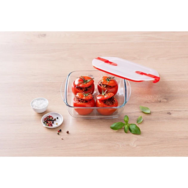 Emportez vos repas faits maison partout où vous vous trouvez, et conservez toutes sortes d’ingrédients durant une longue période avec les boîtes hermétiques Pyrex. Entreposer, conservez, cuire, ou réchauffer, tout est possible avec la boîte de conservation carrée Cook & Heat. Cette dernière possède un corps en verre borosilicate et un couvercle hermétique muni de deux attaches coulissantes et de valves vapeur. Toutes ces caractéristiques s’allient pour créer une boîte de conservation qui vous servira au jour le jour.
