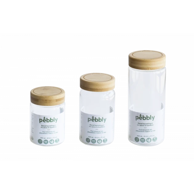 Si vous recherchez un moyen de conservation sain, naturel et efficace, laissez-vous convaincre par la boîte de conservation en verre et bambou rond Pebbly qui vous apportera satisfaction au quotidien !