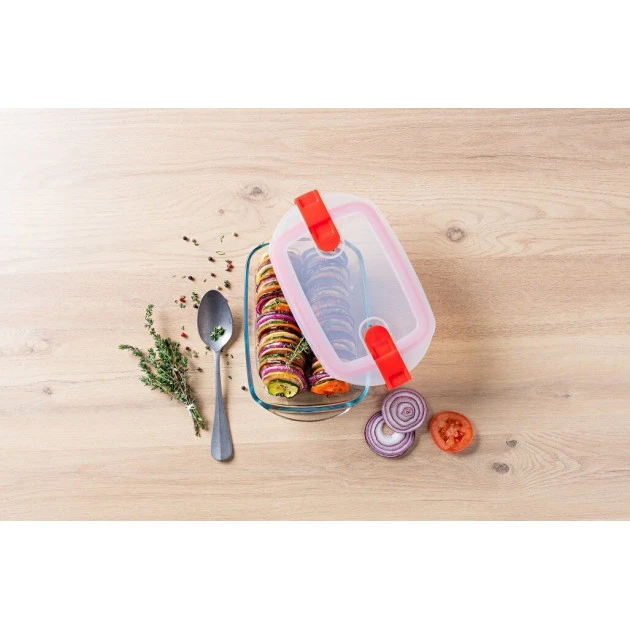 Au four, au micro-ondes, ou au congélateur, la boîte hermétique rectangulaire Pyrex vous garantit de succulents repas partout où vous allez.