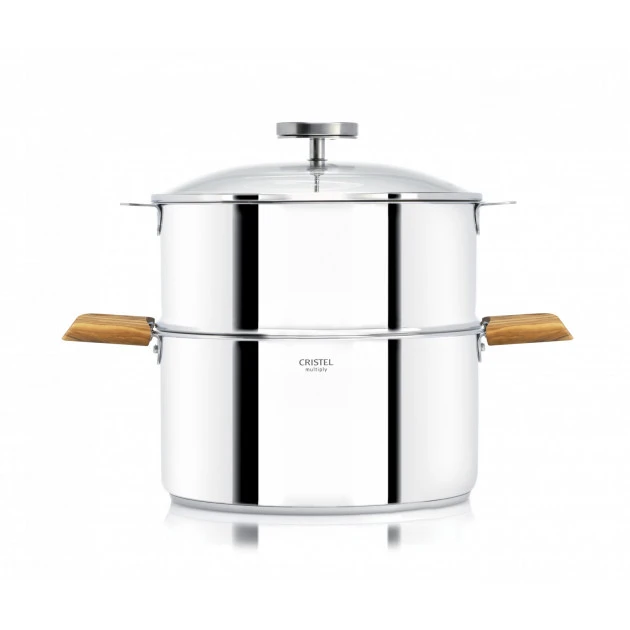 Pour manipuler ces deux ustensiles de cuisson, vous trouverez Ă©galement une paire de poignĂ©es amovibles en bois d’olivier. Ces anses Cristel possĂšdent un mĂ©canisme en inox qui vous permet de jongler avec les poignĂ©es, que ce soit sur la casserole ou sur le cuit vapeur. Un couvercle en verre borosilicate s’adaptera sur l’un ou l’autre pour permettre Ă l’eau de condensation de couler le long des parois, grĂące Ă sa forme bombĂ©e. Ce couvercle transparent et rĂ©sistant sera Ă©quipĂ© d’un thermomĂštre amovible avec un cadran dĂ©taillant les diffĂ©rentes zones de cuisson en °C ou en °F.