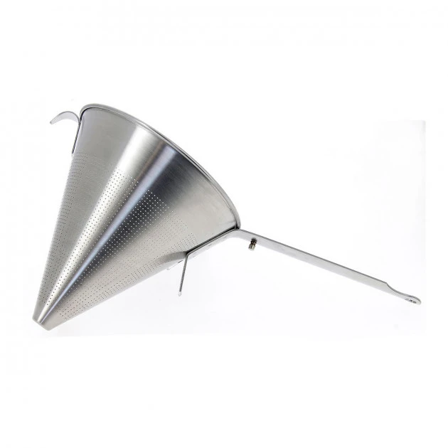 Le chinois pâtissier en acier inoxydable a la particularité d’avoir des micro-perforations qui le rendent aussi efficace que l’étamine, avec quelques avantages en plus : hygiène solidité et sécurité. Ce chinois pâtissier est de qualité professionnelle, il est donc particulièrement solide et résistant.