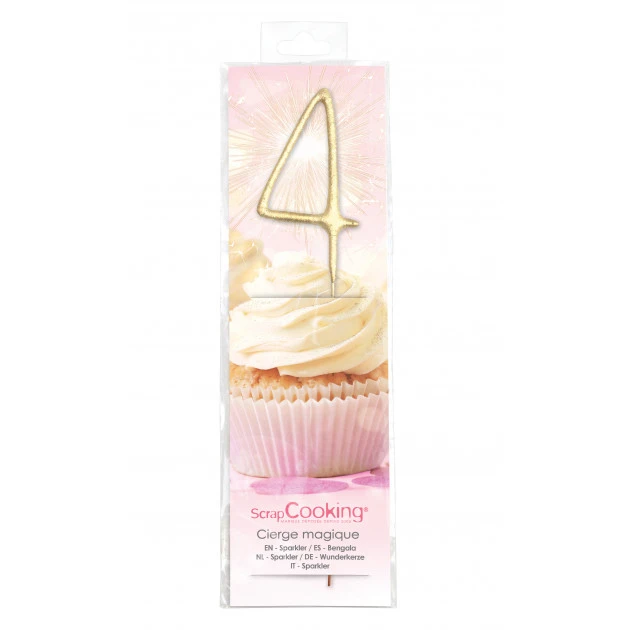 Cierge Magique Or 17,5 cm Chiffre 4 Scrapcooking