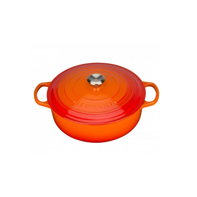 Pratique et ergonomique, cette cocotte basse Le Creuset est dotĂ©e de larges poignĂ©es, conçus pour une prise en main optimale. De plus, la cocotte en fonte Ă©maillĂ©e est munie d’un bouton en acier inoxydable rĂ©sistant aux fortes chaleurs mais Ă©galement un couvercle permettant une hydratation totale de vos aliments. La cocotte en fonte Le Creuset est donc idĂ©ale pour une cuisine naturelle et savoureuse !