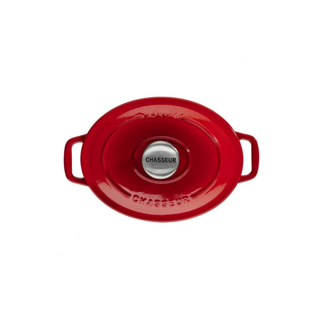Mijotez de tendres petits plats Ă l’aide de la cocotte en fonte ovale de 17 cm Chasseur. ComposĂ© de fonte Ă©maillĂ©e, cet indispensable de la cuisine est robuste et fabriquĂ© entièrement en France. Son couvercle striĂ© Ă©galement en fonte et ses deux anses vous assurent un service impeccable, tandis que sa couleur rubis (rouge) apportera une touche de couleur Ă votre cuisine et soulignera celle de vos ingrĂ©dients.