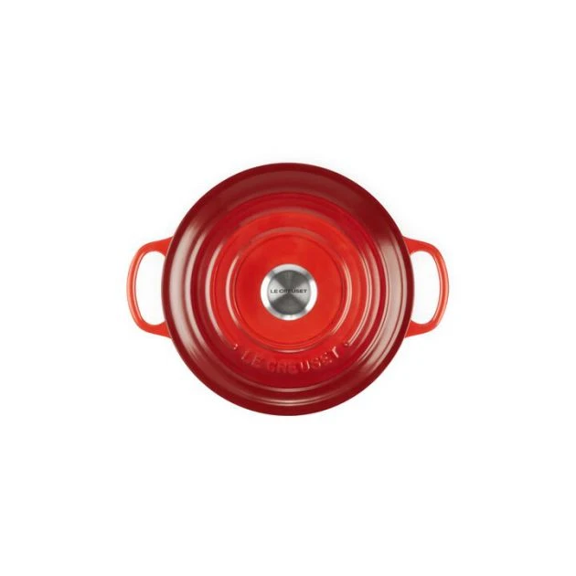 La nouvelle gamme de cocotte en fonte Le Creuset Signature utilise un Ă©mail intĂ©rieur qui facilite Ă la fois le nettoyage mais qui est Ă©galement particulièrement rĂ©sistant aux chocs et aux rayures. La cocotte en fonte ronde dispose de poignĂ©es permettant une prise en main confortable, y compris avec des maniques. CĂ´tĂ© design, le bouton en mĂ©tal apporte une pointe de moderne et d’Ă©lĂ©gance tout en rĂ©sistant aux fortes tempĂ©ratures du four. Le couvercle vient Ă©galement parfaire le design de la cocotte en fonte et confère une meilleure hydratation du plat et des arĂ´mes.