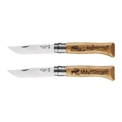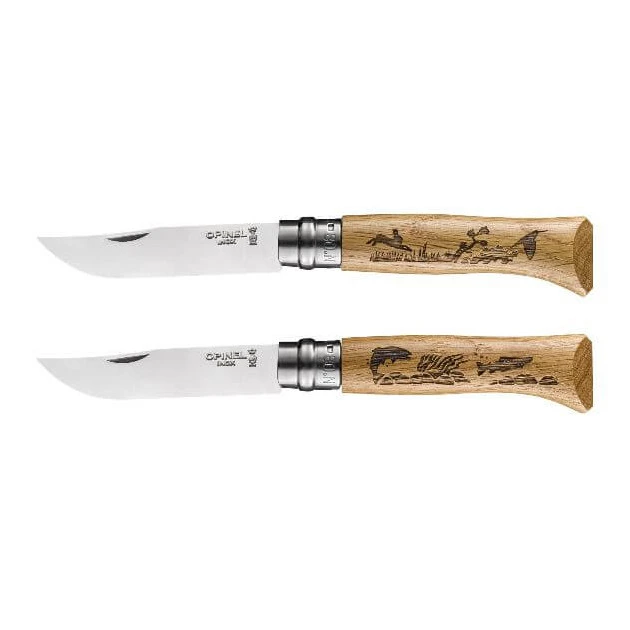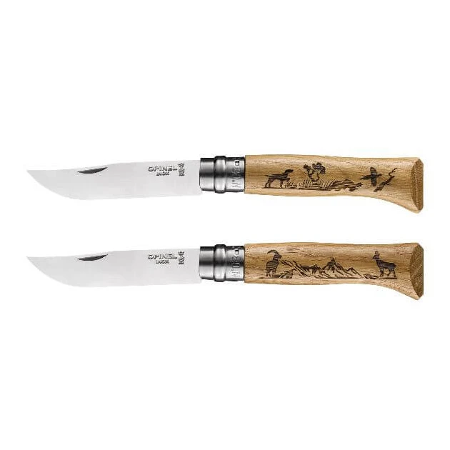 Retrouvez toute la collection Gravure Animalia en un seul et unique coffret Opinel. Les animaux de la rĂ©gion savoyarde sont rĂ©unis sur le manche de ces couteaux de qualitĂ© professionnelle. Le cerf, roi des forĂŞts, lance son brame aux cĂ´tĂ©s du chamois des montagnes et du lièvre qui bondit Ă travers champs. C’est toute la faune de ces milieux naturels qui est figĂ©e sur ces couteaux de poche exceptionnels.