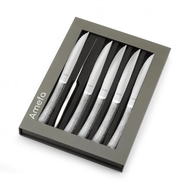 Ce Coffret Amefa contient 6 couteaux en acier pour une lame tranchante Ă souhait. Le Coffret Couteaux Steak sera parfait pour un cadeau original.