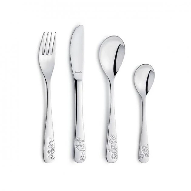 Aidez vos enfants Ă apprivoiser lâutilisation de couverts avec ce Coffret ForĂȘt 4 Couverts Enfant Amefa.