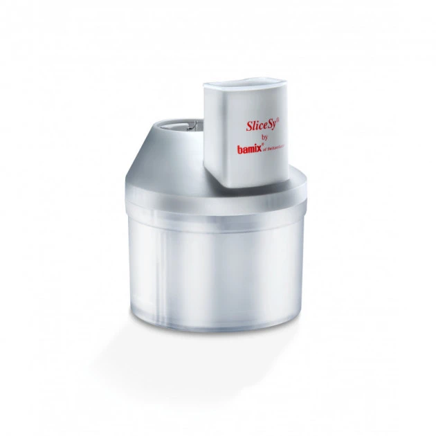 Le Slicesy, sur lequel vient se fixer le mixeur plongeant Bamix, dĂ©coupe les aliments de façon homogène afin d’offrir une cuisson homogène et une jolie prĂ©sentation.Â