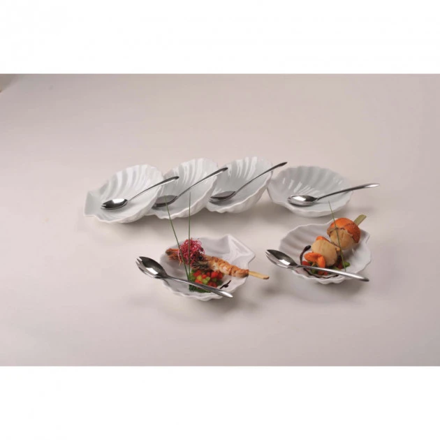 LeBrun présente ce coffret avec 6 coquilles Saint-Jacques en porcelaine blanche avec ses 6 cuillères mixtes (tête cuillère et fourchette) pour une dégustation des plus délicieuses.