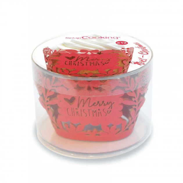 Avec les 12 contours cupcake Noël de Scrapcooking, habillez vos muffins aux couleurs de Noël avec des rennes, des sapins et des pommes de pins. Une fois les petits desserts cuits, il suffit de les enrouler avec le contour rouge Scrapcooking et le tour est joué !