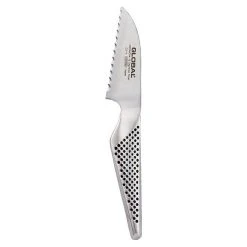 Le couteau à tomates global GS9 possède une lame crantée idéale pour couper les tomates sans les abimer.