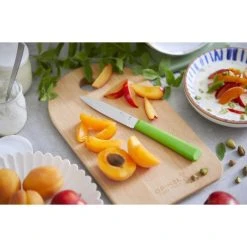 Indispensable de la cuisine, le couteau d’office N°312 Opinel servira Ă la confection de toutes vos recettes. Peler et couper les lĂ©gumes deviendra un jeu d’enfant ! Avec sa lame en inox lisse et pointue, ce couteau d’office vert pourra aussi vous servir Ă dĂ©grainer ou dĂ©noyauter fruits et lĂ©gumes.