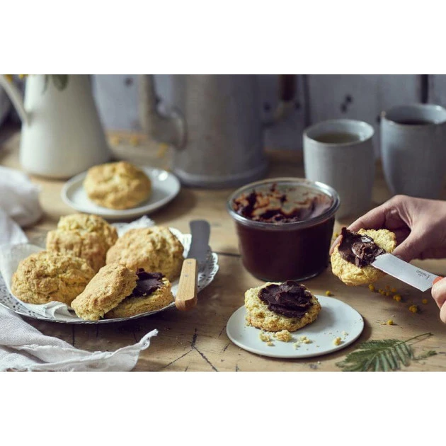 Votre repas le plus important de la journée ne serait rien sans des tartines de beurre, confiture, ou pâte à tartiner. Pour étaler uniformément votre pâte à tartiner maison, faites confiance au couteau petit-déjeuner Opinel.
