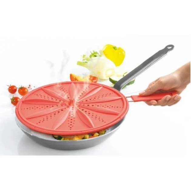 Le couvercle anti-Ă©claboussures de Mastrad peut ĂŞtre utilisĂ© Ă la fois pour protĂ©ger des Ă©claboussures mais aussi en tant que couvercle de cuisson. Malin, le couvercle dispose d’une rosace qui pivote afin de contrĂ´ler la quantitĂ© de vapeur qui s’Ă©chappe. Vous conserver ainsi le croustillant des aliments.