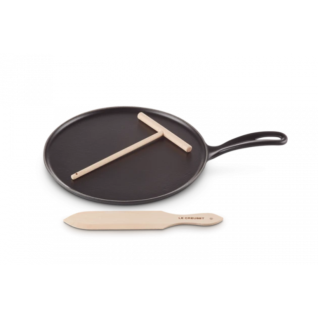 Crêpière en Fonte 27 cm Noir Mat avec Spatule & Râteau Le Creuset