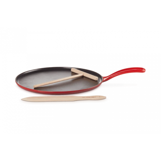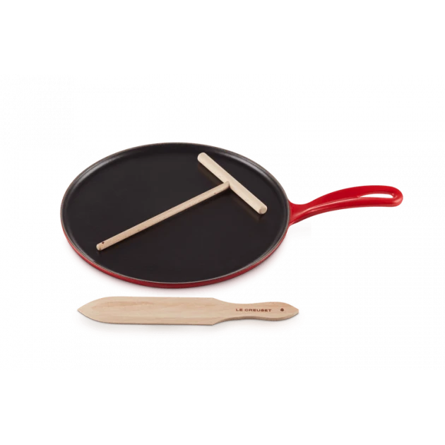 Crêpière Fonte Émaillée 27 cm Cerise avec Accessoires Le Creuset