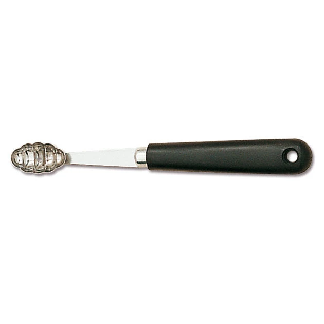 La forme ovale cannelée de cette cuillère parisienne permet de réaliser des formes inattendues pour une présentation personnalisée avec des pommes, melons, avocats…