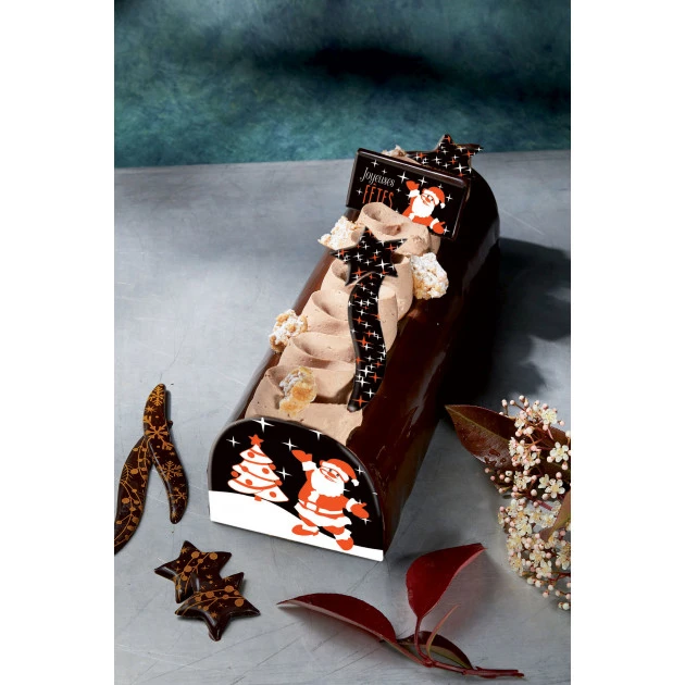 Ce Kit Bûche de Noël vous permettra de décorer rapidement et joliment 2 bûches ! Placez les embouts de bûches et les décors en chocolat sur votre Bûche de Noël pour une décoration rapide.