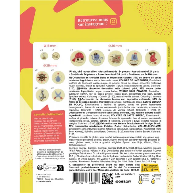 Décors Chocolat Blanc Pirate 24 pièces Chocolatree Valrhona