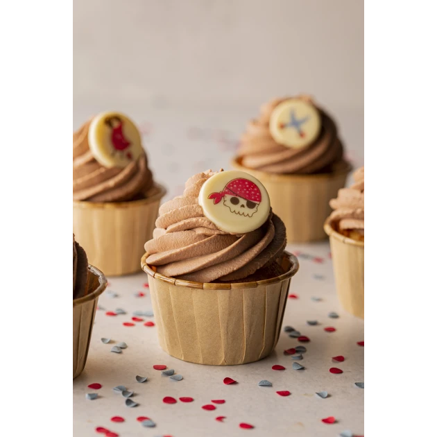 Composés de 24 pièces, ces décorations en chocolat disposent de motifs enfantins au couleurs pastel qui retracent le thème pirate dans les moindres détails. Fabriqués en France, ces décors pirates en chocolat blanc sont proposés dans différents diamètres vous permettant par exemple, de déposer les petits sur vos cupcakes et les plus grand sur vos layer cake.