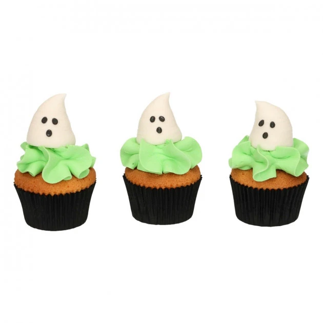 A la fois effrayants et adorables, ces 3 fantômes comestibles seront parfaits pour décorer vos délicieux gâteaux ou cupcakes et les faire plonger dans un univers Halloween terrifiant qui hantera les esprits les plus gourmands d’entre nous ! Visuellement très esthétiques, ces fantômes sont réalistes et feront une décoration idéale grâce à leur forme et leur expression faciale susurrant un « BOUH » !