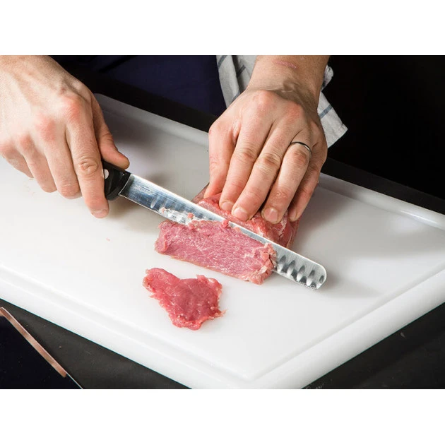 Le couteau à jambon 22 cm Darkwood Déglon est un couteau polyvalent qui peut être utilisé pour couper des tranches de jambon entier, mais aussi comme couteau à saumon, couteau à carpaccio ou couteau à tomate. Ses nombreuses possibilités d’utilisation feront du couteau à jambon Déglon, un indispensable de votre cuisine !