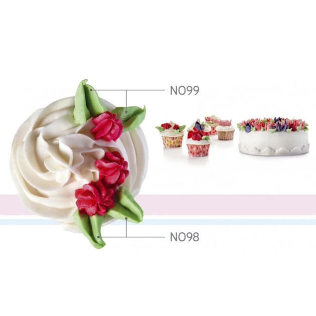 L’utilisation d’une poche à douille pour réaliser des décors parfois périlleux, surtout si l’on souhaite obtenir un résultat fin et léger. Mais cela n’est plus un problème grâce à la douille russe. Alors qu’auparavant il fallait façonner la fleur pétale par pétale, la douille russe vous permet de réaliser une fleur complète en quelques secondes. Non seulement vous gagnez du temps et en plus, le résultat est plus net et régulier. Dans ce lot de 12 Douilles Russes, vous trouverez, pour les plus à l’aise, des douilles pétales de fleur et des douilles feuilles.Â