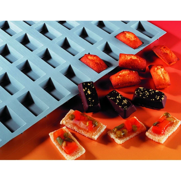 Moule à Financier en Elastomoule : Mousse de silicone alimentaire. La matière transmet parfaitement la chaleur, donne un bel aspect doré aux mini-financiers et leur confère un goût inimitable grâce à la caramélisation des sucs lors de la cuisson. Les angles sont vifs et donnent au produit une belle présentation.