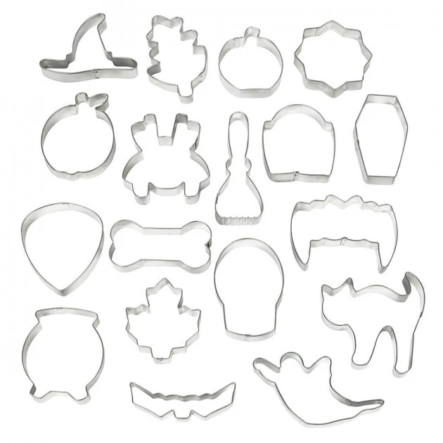 Grâce Ă cet assortiment de 18 Emporte Pièce Halloween, rĂ©alisez en tour de main des biscuits aux formes toutes plus originales les unes que les autres. PrĂ©sentĂ©s dans une boĂ®te cylindrique, vous pourrez retrouver les emporte pièce Halloween suivants : un chapeau de sorcière, une jambe, un fantĂ´me, une toile, une pomme, une araignĂ©e, un crâne, un chaudron, des dents de vampire, un cercueil, une pierre tombale, un balai, une feuille de chĂŞne, un chat, une citrouille, un chauve-souris, des bonbons et une feuille d’Ă©rable.