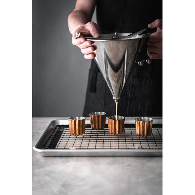 D’une capacité de 1.9 L, l’Entonnoir à Piston KWIK Pro De Buyer est idéal pour verser des préparations liquides ou semi-liquides proprement et rapidement. Il s’utilise aussi bien en pâtisserie qu’en cuisine pour remplir des moules de chocolat ou des fonds de tarte d’appareil à quiche.Â