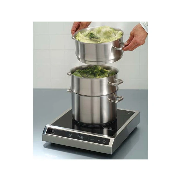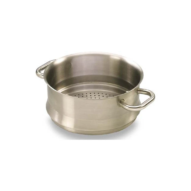 Utilisez un rĂ©cipient de mĂŞme diamètre que l’Ă©tage vapeur (faitout, casserole, cocotte…) pour une cuisson optimale. L’Ă©tage vapeur de 28 cm possède deux anses froides ainsi qu’un fond perforĂ© et a une capacitĂ© de 8,6 L.