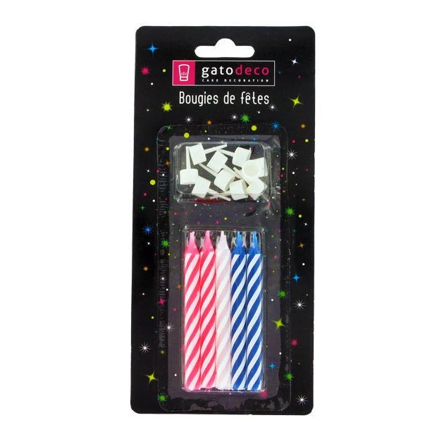 Les bougies d’anniversaire torsadĂ©es fines assorties sont vendues avec leurs supports bobèches. IdĂ©ales pour fĂŞter un anniversaire ou n’importe quel autres Ă©vènements : mariages, anniversaire de relation, saint valentin…