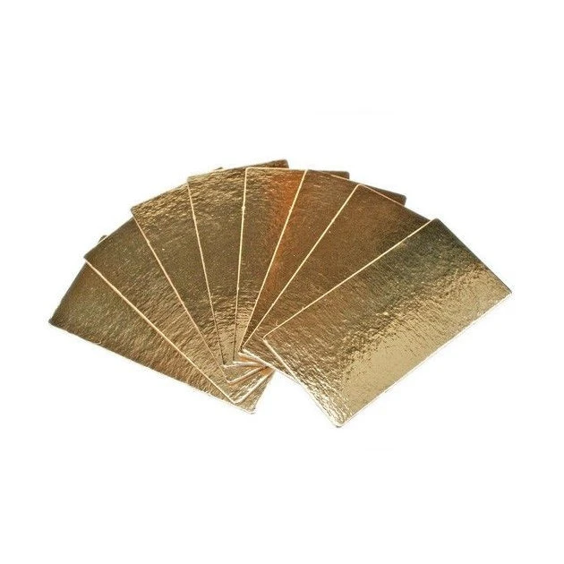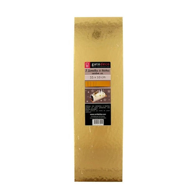Pour la présentation de vos bûches (pâtissières ou glacées) ou gâteaux rectangulaires, voici un kit de 5 Semelles à Bûches Dorées 35 x 10 cm. Idéal pour stocker et transporter vos desserts !
