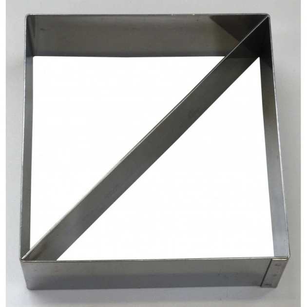 Ce cadre carré à mousse va vous permettre de réaliser des présentations à deux saveurs. En effet, grâce à son séparateur amovible en diagonale vous allez pouvoir réaliser des présentations du plus bel effet.
