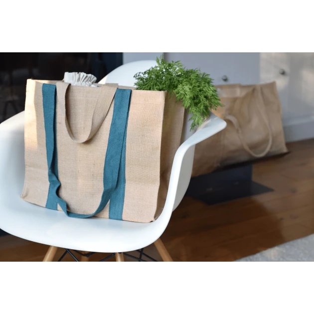 Son design naturel en fibre de jute ainsi que ses longues anses en coton bio tissé couleur bleu jean, apportent une touche tendance à ce sac cabas. Avec ses dimensions de 41 cm de long, 20 cm de large et sa hauteur de 35 cm ce grand sac sera le compagnon parfait pour tous types d’activités.
