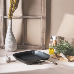 Grill Carré Castel’Pro 28 cm Poignée Fixe Ultralu Cristel