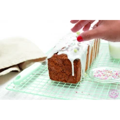 La grille pâtisserie dispose de quatre pieds en métal permettant de la surélever et ainsi laisser refroidir votre gâteaux, ou encore récolter les chutes de votre glaçage. Cette grille rectangulaire s’adaptera à tout type de gâteaux grâce à son grand format.