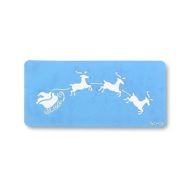 A l’aide du pochoir pour gâteau il devient très facile de créer un décor de Noël sur vos pâtisseries, glaçages, pâtes d’amande ou gâteaux recouverts de pâte à sucre. Simple d’utilisation, placez le pochoir au dessus de votre gâteau ou de la surface sur laquelle vous souhaitez apposer le motif et appliquez à l’aide d’une spatule coudée votre glace royale, sucre glace, sucre neige, cacao en poudre ou spray alimentaire afin de remplir les espaces vides. Retirez délicatement le pochoir de Noël: comme par magie le traîneau du Père Noël apparaît sur votre gâteau.