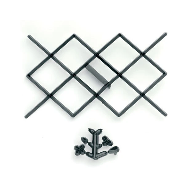 Enduisez les Ă©lĂ©ments du Kit Emporte Pièce Diamant de Crisco également, ainsi ils se dĂ©tacheront plus facilement. Prenez l’outil en forme de losange d’abord, puis pressez-le contre la pâte Ă sucre, puis soulevez-le dĂ©licatement. ComplĂ©tez le motif en pressant les petits emporte-pièce goutte ou trèfle sur le coin supĂ©rieur de chaque losange ou du moins, Ă intervalle rĂ©gulier.Â
