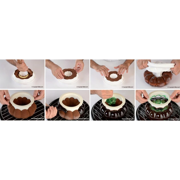 – le moule silicone Magia Del Tempo (magie du temps), en forme de couronne bombĂ©e. Sa forme particuliĂšre vous facilitera le dĂ©coupage de votre crĂ©ation en plusieurs portions individuelles.