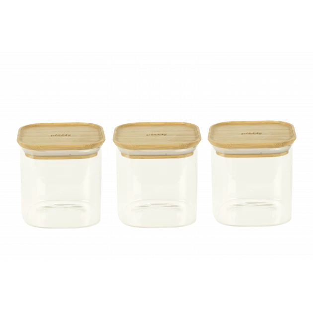 Lot 3 Boîtes de Conservation en Verre et Bambou Carré 800 ml Pebbly
