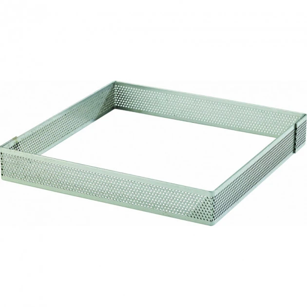 Proposé à l’unité, le Cadre à Tarte Carré Inox Perforé se décline en plusieurs tailles allant de 7.5 à 22 cm. De la tartelette à la tarte à partager, il y en a pour tous les appétits ! Les plus grands carrés possèdent un bord plié pour être plus rigides.
